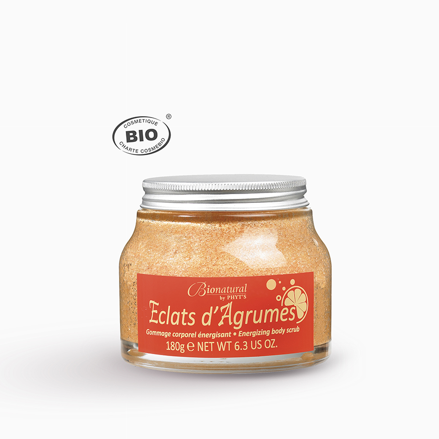 Craquez pour ce gommage corps Éclats d’Agrumes Bionatural ! Surprenant mélange nacré de sucre blond et de zestes d’agrumes qui exfolient en douceur. La peau lisse et satinée est prête à recevoir son soin.